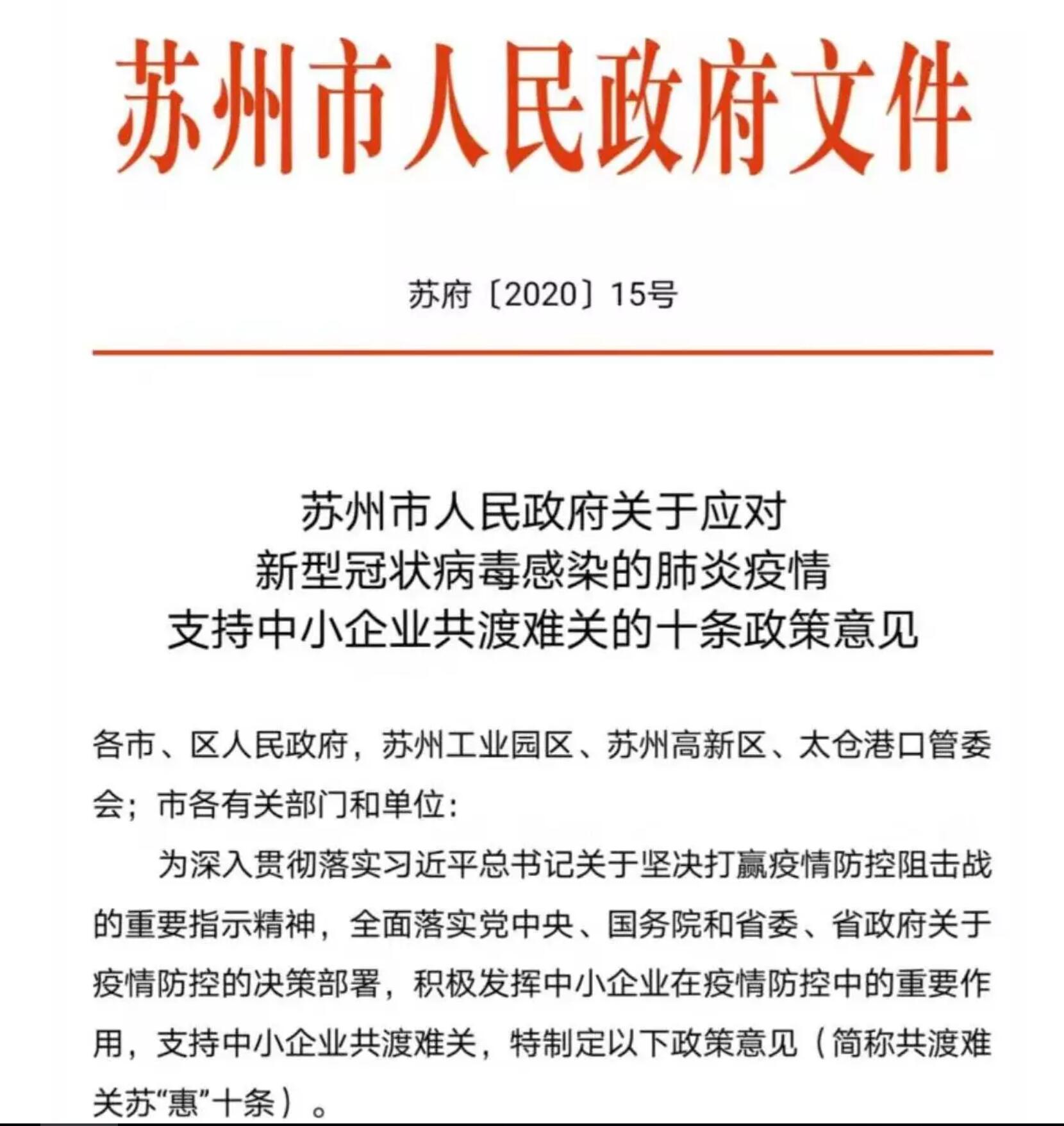 疫情期間蘇州重磅出臺支持中小企業(yè)共渡難關(guān)的十條政策