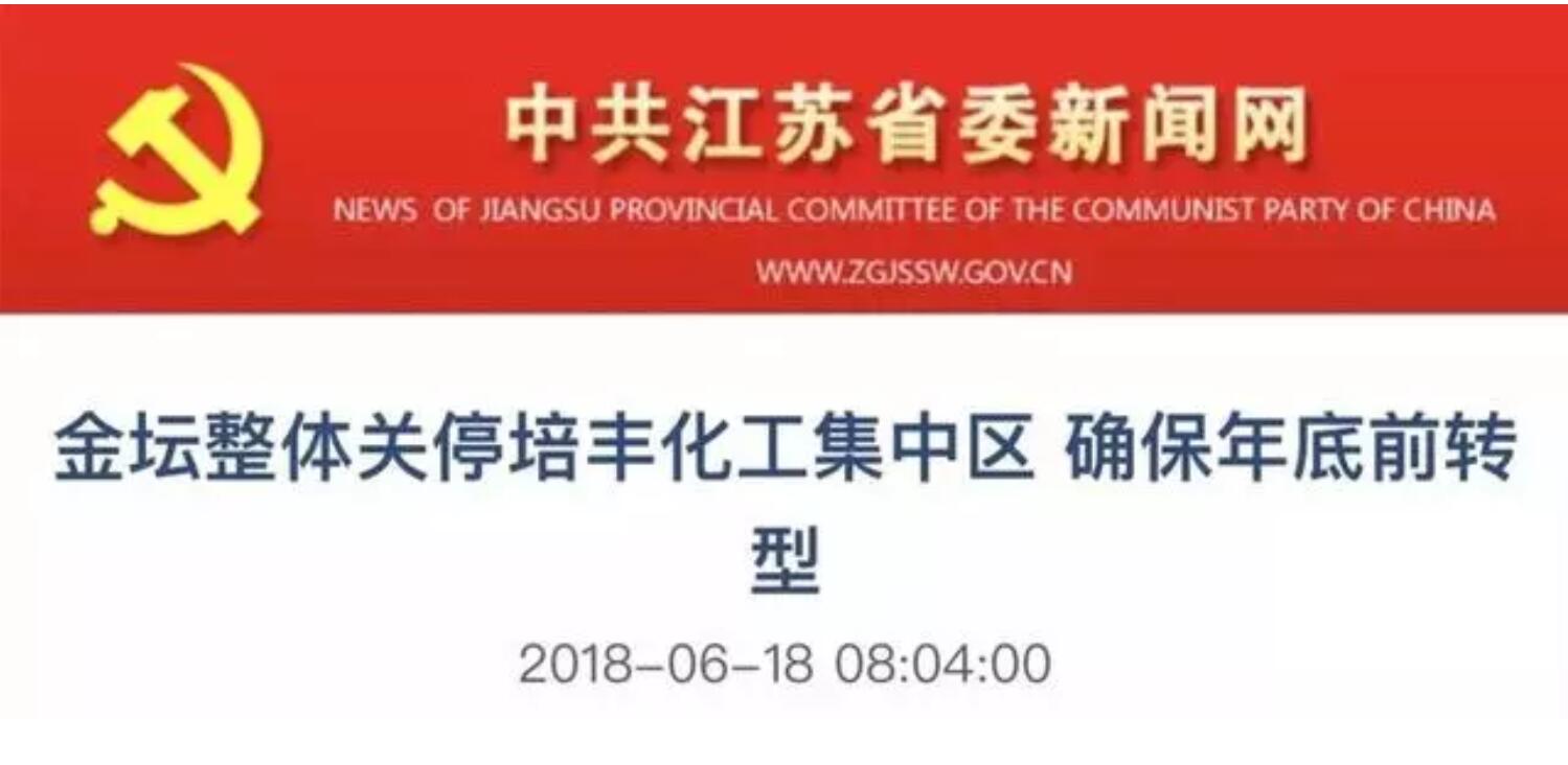 據(jù)當(dāng)?shù)毓俜矫襟w2018年報道顯示,常州市金壇區(qū)于2016年8月1日收到中央環(huán)境保護(hù)督察組交辦的環(huán)境信訪事項(xiàng)后,持續(xù)對園區(qū)企業(yè)進(jìn)行了提標(biāo)改造。作為2016年中央環(huán)保督察交辦的38個化工園區(qū)問題之一,因未能滿足500米衛(wèi)生防護(hù)距離內(nèi)居民全部拆遷的要求,區(qū)委、區(qū)政府決定從根源上消除環(huán)境隱患,結(jié)合將來的區(qū)域發(fā)展規(guī)劃,取消培豐化工集中區(qū)產(chǎn)業(yè)定位,按化工企業(yè)整治的要求,對所有企業(yè)實(shí)行關(guān)停。